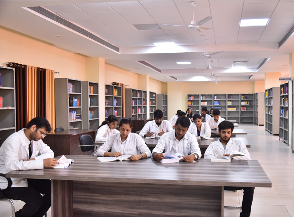 The Library is constructed in such a way so as to facilitate students learning. It comprises of well ventilated and peaceful Reading area and Journal Section, with good collection of latest edition of books and Journals of both Indian and Foreign Publications. Library has also facility of Computers & Internet for online data & knowledge collection for students.