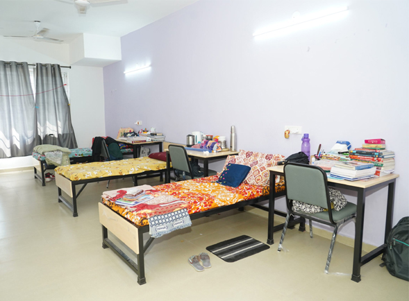 The hostel is clean and comfortable, and each room is provided with adequate facilities for stay and study. The hostel has a Visitors’ Lounge, Recreation Hall, Study Hall and sick room along with facilities for Indoor Games, Magazines Reading and Television. Mess facilities are also available with a well maintained Dining Hall adjacent to the hostel. Vegetarian/ Non-Vegetarian meals are prepared hygienically and served aesthetically. Students’ are served with Nutritional and quality Foods to keep them healthy.